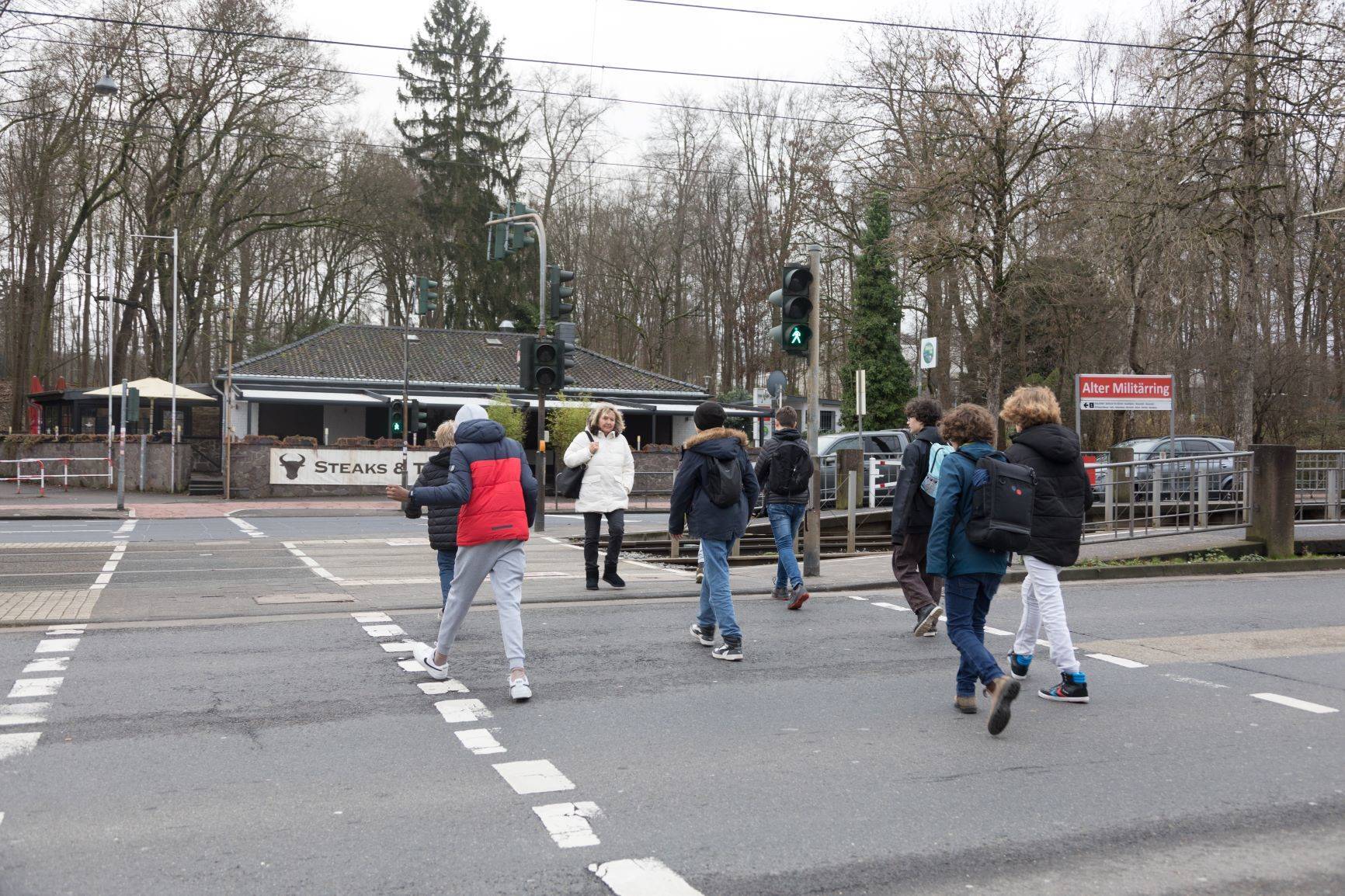Mit der Änderung haben wir auch auf die Rückmeldung vieler Eltern reagiert. Die Grünzeiten sind hier für Schüler*innen und andere Fußgänger*innen seit dem neuen Schuljahr 2023/2024 so lang, dass diese die Aachener Straße bequem und sicher überqueren können. Wer mit Grünbeginn losgeht, muss in der Regel nicht mehr auf der engen Mittelinsel halten,