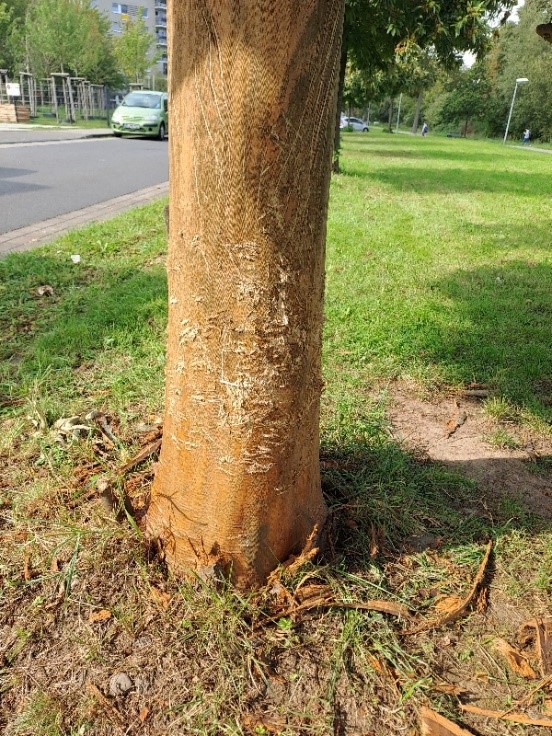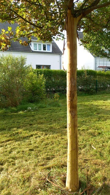 Der zweite Fall wurde in der Hans-Schulten-Straße in Brück festgestellt. Auch hier wurde die Rinde vom Wurzelstock bis zum Kronenansatz vollständig entfernt. Bei den geschädigten Bäumen handelt es sich um wirtschaftliche Totalschäden, da die Bäume aufgrund der massiven Verletzungen innerhalb der nächsten Vegetationsperiode absterben werden. Es wird in beiden Fällen eine Strafanzeige wegen Sachbeschädigung für die schwer geschädigten Bäume gestellt. Die Höhe des Sachschadens beläuft sich pro Baum auf etwa 3.500 Euro.