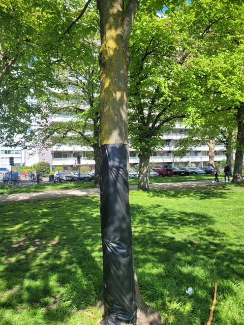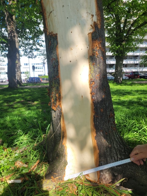 Einen weiteren Fall von Baumfrevel hat es an drei Bäumen im Inneren Grüngürtel gegeben. Am Wasserspielplatz Kreutzerstraße wurde vermutlich in der Nacht vom 30. April auf den 1. Mai 2023 an zwei Bäumen Vandalismus durch Rindenentfernung begangen, an einem weiteren Baum wurde die Rinde halbseitig bis auf etwa zwei Meter entfernt. Diese Linde ist ein wirtschaftlicher Totalschaden, da aufgrund der Verletzung nur noch eine geringe Reststandzeit besteht. Um den Baum dennoch möglichst lange zu erhalten, wurde er mit einem sogenannten Wundpflaster versehen. Es wird eine Strafanzeige wegen Sachbeschädigung für den schwer geschädigten Baum gestellt. Die Höhe des Sachschadens beläuft sich auf rund 3.000 Euro.
