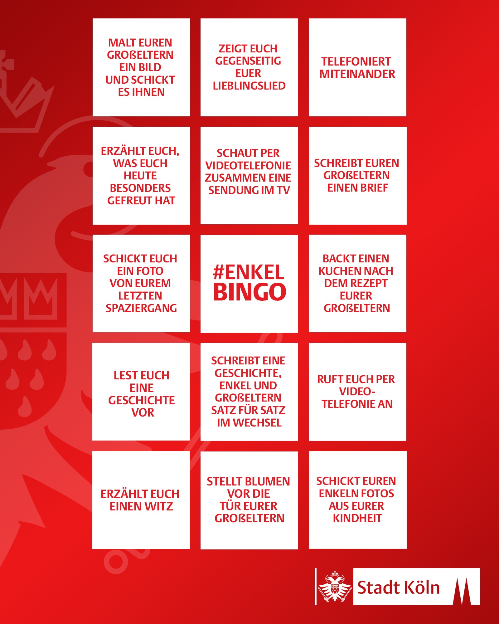 Das Gesundheitsamt ruft auch ältere Menschen, die zu Hause leben, auf, Familienmitglieder, Freunde und Bekannte darum zu bitten, auf persönliche Zusammenkünfte bis auf Weiteres zu verzichten. Auf den Social-Media-Kanälen der Stadt Köln wird es Anregungen geben, wie der Kontakt zu den älteren Kölnerinnen und Kölnern dennoch aufrechterhalten werden kann.