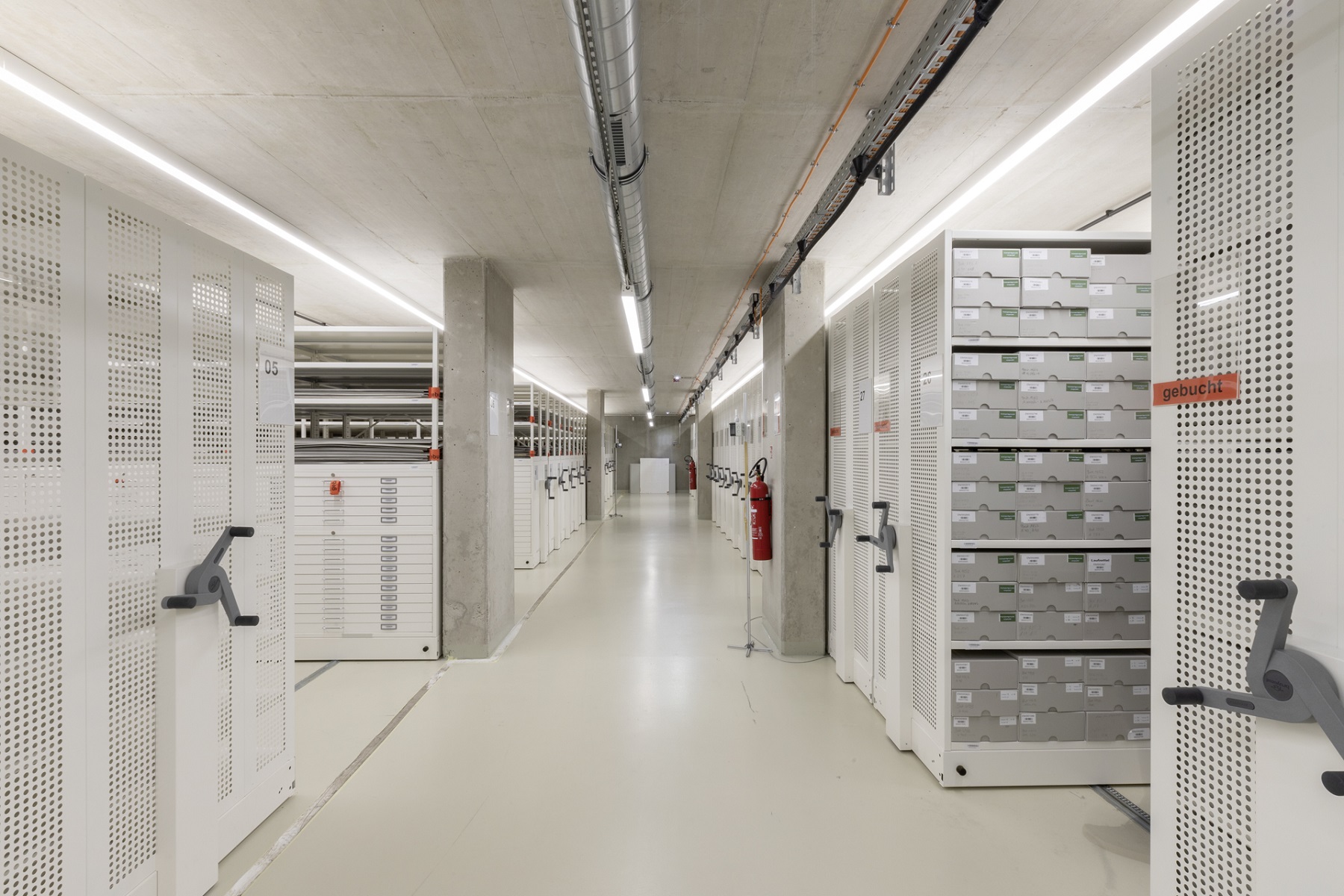 Mit der Beendigung der Bergungserfassung am Standort Düsseldorf sind damit nun rund 165 Mitarbeiter*innen des Archivs und etwa 35 laufende Kilometer Bestände im Neubau am Eifelwall angekommen.