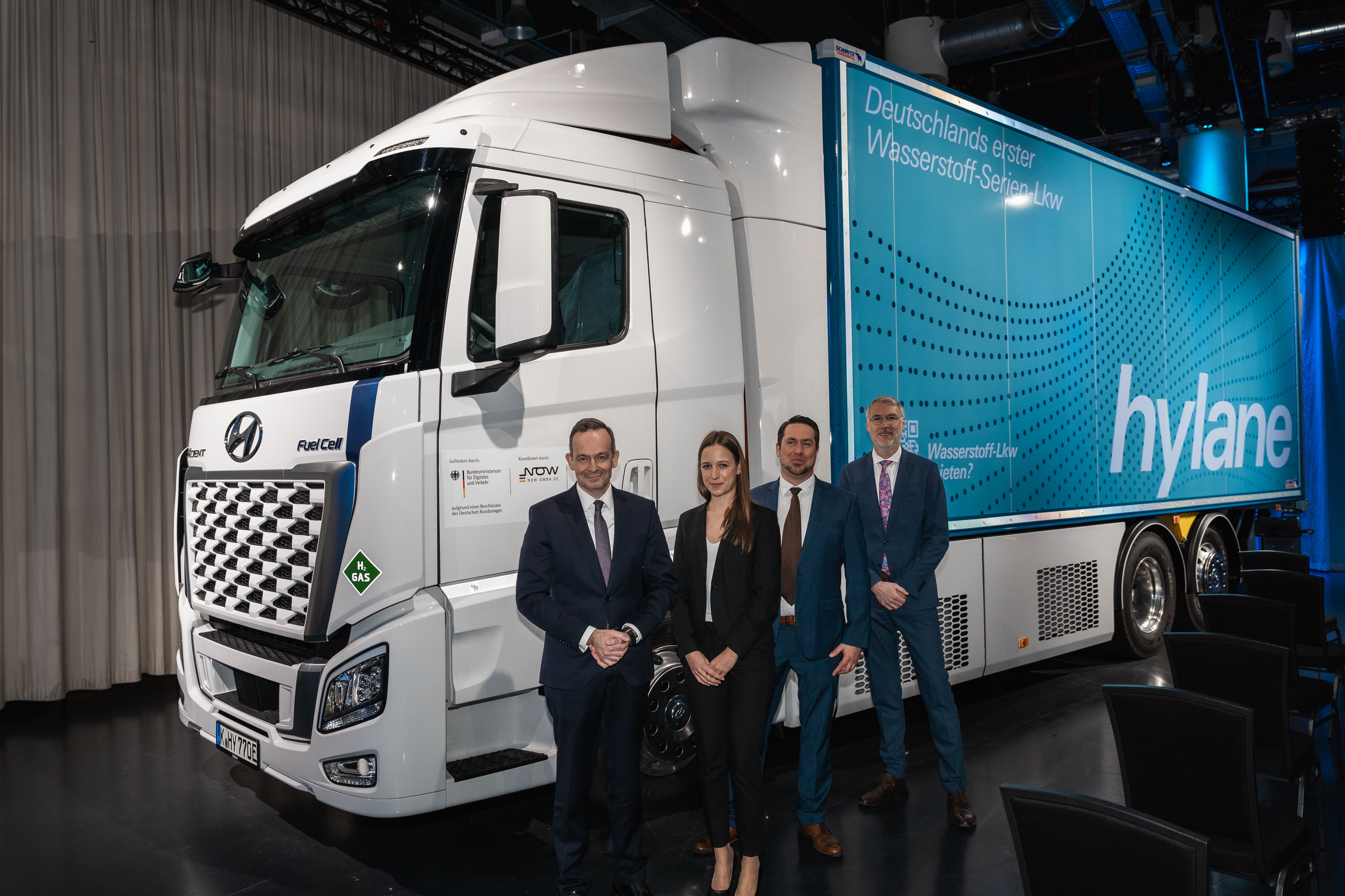 Der erste Wasserstoff-Lkw aus Serienfertigung hat diese Woche in der Kfz-Zulassungsstelle der Stadt Köln eine deutsche Zulassung erhalten. Der "XCIENT Fuel Cell" des Herstellers Hyundai macht den Anfang für die vorerst 44 Wasserstoff-Lkw der HyLane-Mietflotte, die in ganz Deutschland unterwegs sein wird.