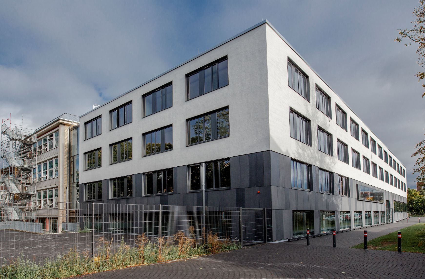 Viel Licht, Luft und Raum hat das Genoveva-Gymnasium in Köln-Mülheim durch seinen Erweiterungsbau erhalten. Nach 39 Monaten Bauzeit konnte die Gebäudewirtschaft das Projekt nun abschließen. In den Schulstandort wurden 18,3 Millionen Euro investiert. Der viergeschossige Neubau schließt direkt an den Altbau an und bildet mit den beiden Querflügeln nun einen Innenhof.