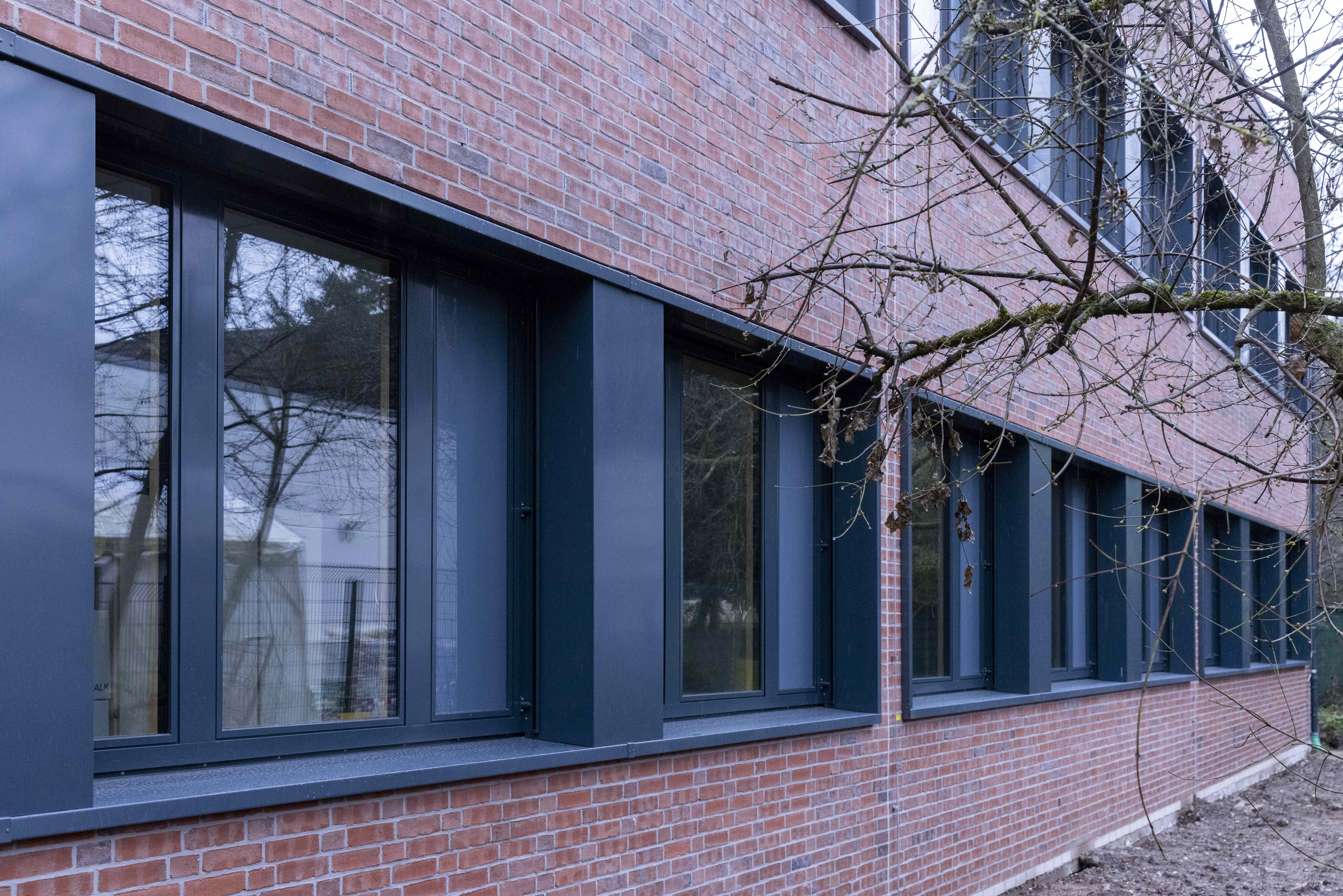 Modulare Bausysteme zeichnen sich durch erheblich kürzere Bauzeiten verglichen zur konventionellen Bauweise aus. Die einzelnen Bauteile werden industriell vorgefertigt und an die Baustelle geliefert. Durch die Holzmodule konnten die Bauten in nur wenigen Monaten fertiggestellt werden. Statt Holzfassaden wurden beide Bauten gedämmt, verputzt und abschließend verklinkert – in Dünnwald auch aus denkmalpflegerischen Gründen als Anpassung an den Bestandsbau. Innen findet sich das Holz an mehreren Stellen wie etwa als Fensterrahmen wieder.