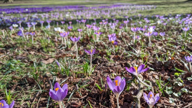 Auf den Wiesen des Botanischen Gartens sind derzeit schon zehntausende Schneeglöckchen und unzählige Krokusse zu bewundern. Wenn das Wetter so frühlingshaft bleibt, folgen bald zehntausende gelbe Winterlinge sowie weitere Winterblüher, beziehungsweise Vorfrühlingsblüher wie Schneeball, Winter-Kirsche, chinesische Winterblüte, Schneerose und Nieswurz. Die 18.000 Frühjahrsblüher, wie Hyazinthen, Narzissen und Tulpen, die im vergangenen Herbst gepflanzt wurden, werden etwa Mitte bis Ende April ihre Blüten entfalten. Die Kamelie blüht auch noch bis Ende April im Kamelienwald mit 400 ausgepflanzten winterharten Exemplaren. Deutschlands größte Kamelien-Ausstellung im Subtropenhaus ist pandemiebedingt leider nach wie vor nicht für die Öffentlichkeit zugänglich.