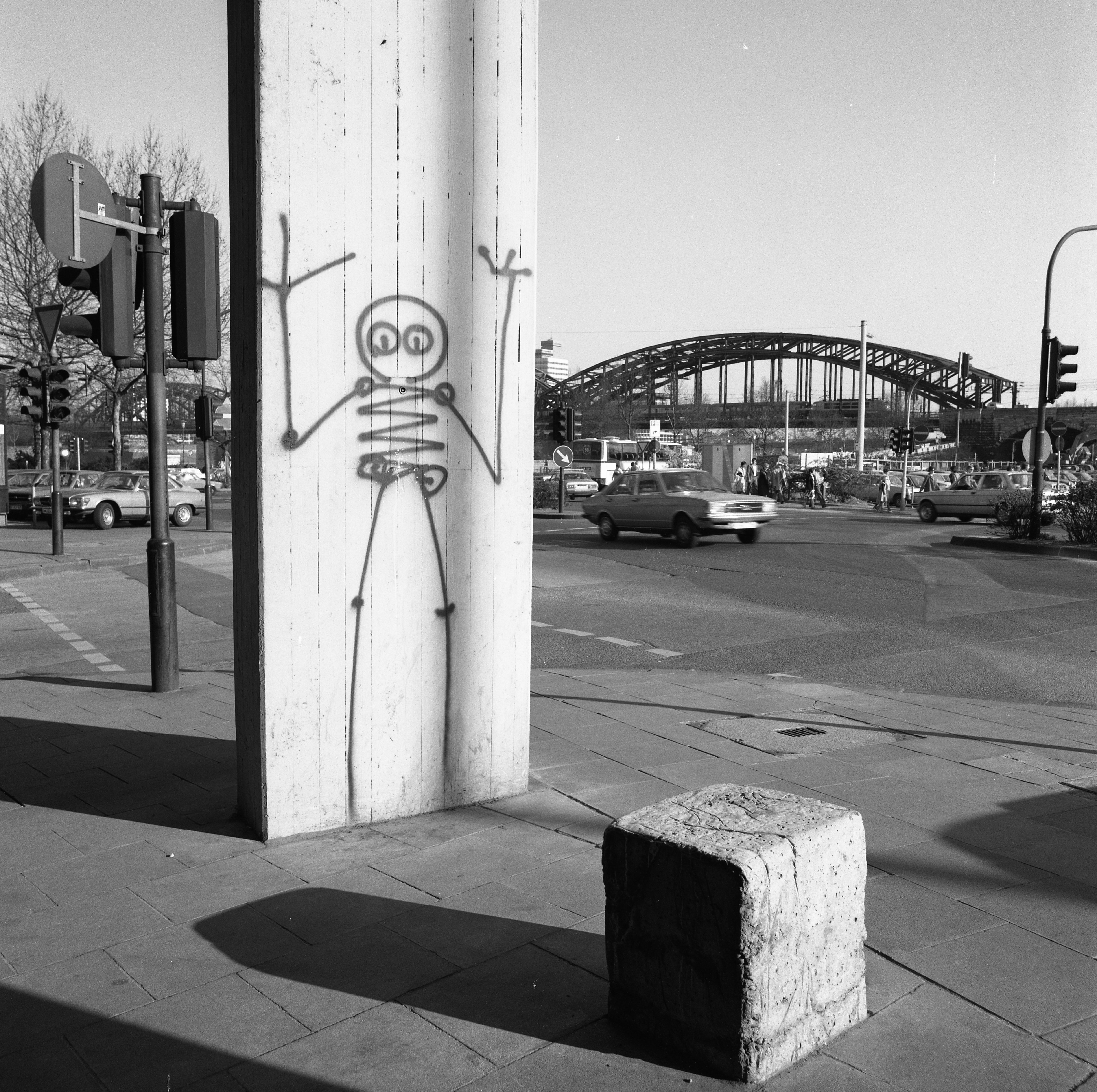 Harald Naegeli (*1939), der "Sprayer von Zürich", kam gegen Ende des Jahres 1979 nach Köln. Seine nachts in den Straßen der Stadt gesprayten Graffiti von Skeletten wurden als „Kölner Totentanz“ berühmt. Am Westportal der Museumskirche St. Cäcilien des Museum Schnütgen wurde das letzte Graffiti aus den 1980er Jahren erhalten.