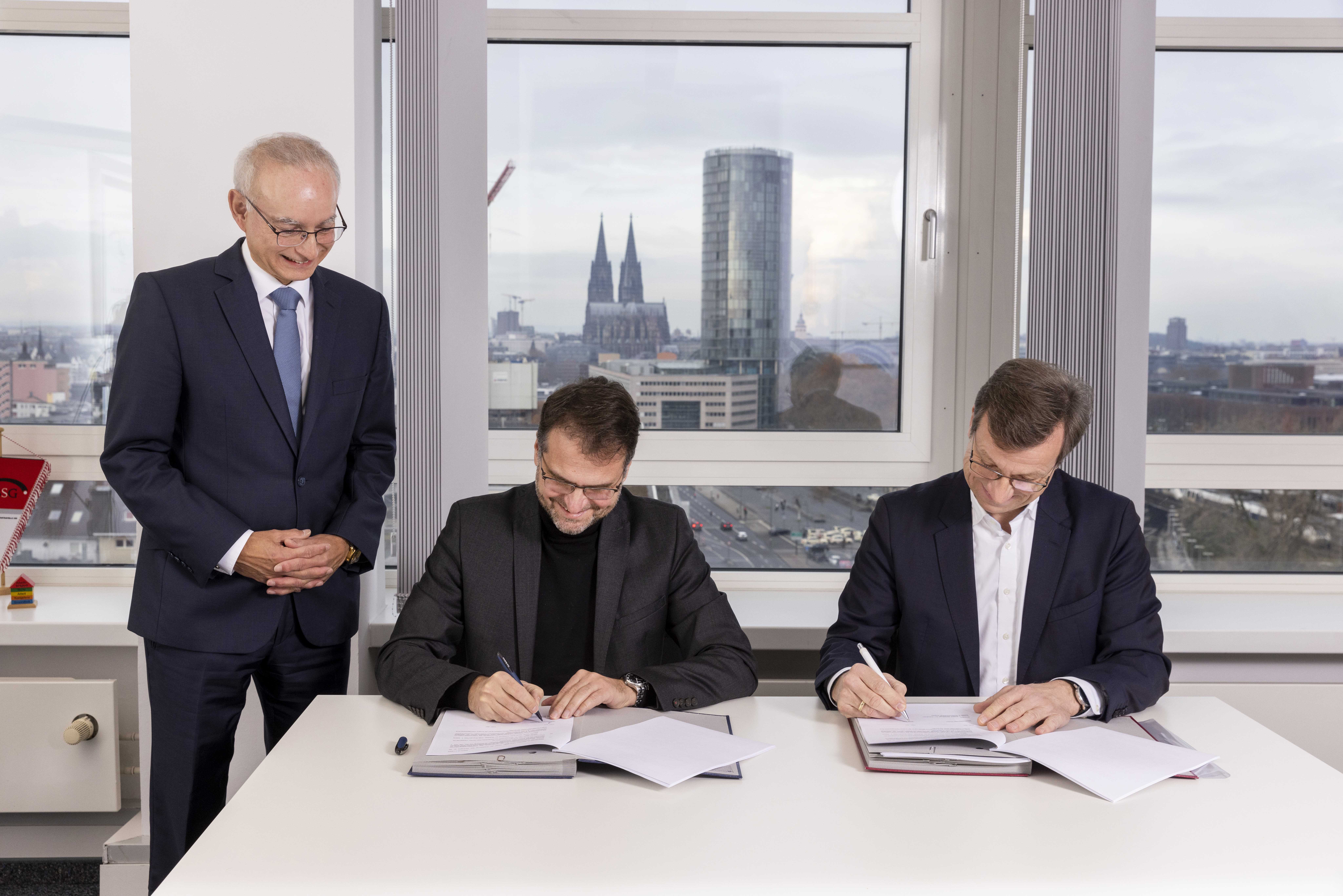 (v. l.): Dr. Michael Paul (Projektleiter SWK), Andreas Feicht (Vorsitzender der SWK), Ascan Egerer (Beigeordneter für Mobilität der Stadt Köln).