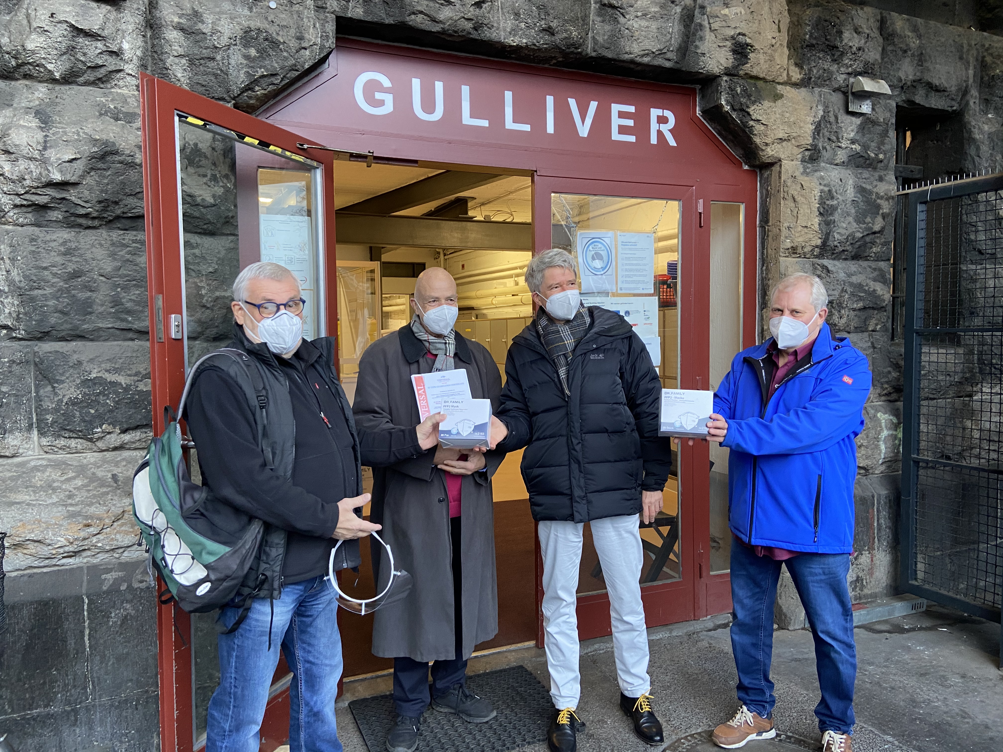 Entgegengenommen haben die Spende Dr. Harald Rau, Beigeordneter für Soziales, Umwelt, Gesundheit und Wohnen der Stadt Köln, sowie Bernd Mombauer, Geschäftsführer des Kölner Arbeitslosenzentrums e.V. (KALZ), zu dem GULLIVER gehört, und Karl-Heinz Iffland, Obdachlosenseelsorger und KALZ-Vorstand.