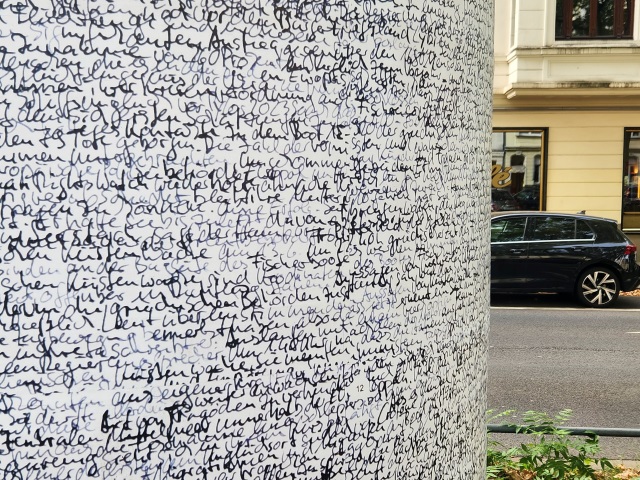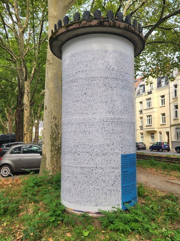 Bis Mitte Oktober 2025 steht mit dem "Seestück IV: Ein Meer aus Worten" ein Motiv der Künstlerin Hiltrud Gauf im öffentlichen Raum, das Menschen zum Nachdenken anregen soll. Für "Seestück IV" hat die Künstlerin hunderte Zeitungsmeldungen und Berichte handschriftlich abgeschrieben, die sich in einem dichten, überlagernden Gewebe aus Schriftzügen ganz dicht über die 360-Grad-Fläche der Säule herumziehen. Das Werk widmet sich damit den Bootsunglücken Geflüchteter im Mittelmeer. Einzelne Nachrichten verschwimmen in der Masse, wirken wie Wellen eines Meeres – erst bei genauerem Hinsehen offenbaren sich bruchstückhaft die Inhalte.