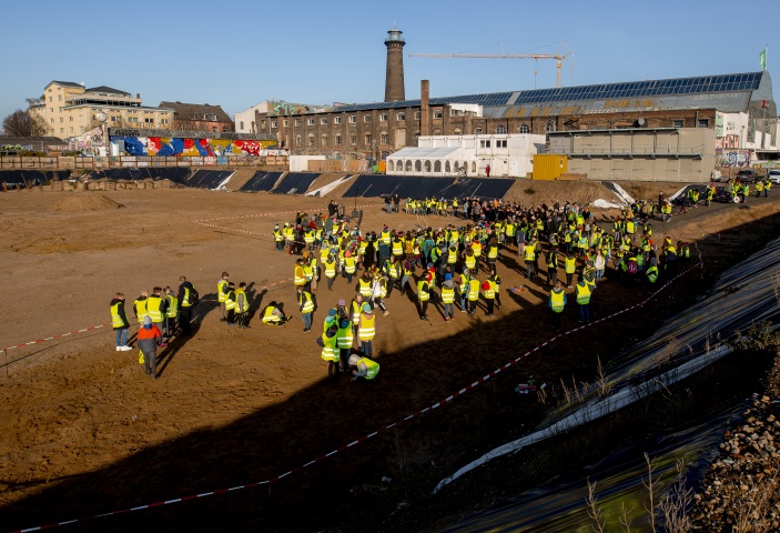 Mit einem symbolischen ersten Spatenstich haben Oberbürgermeisterin Henriette Reker und der Architekt des Bauvorhabens, Professor Johannes Schilling, am heutigen Mittwoch, 4. Dezember 2019, gemeinsam mit Marion Hensel (Leiterin Grundschule) und Andreas Niessen (Leiter Gesamtschule) den offiziellen Baubeginn für die Helios-Schulen, die „Inklusiven Universitätsschulen Köln“, eingeleitet.