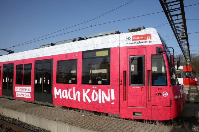 Ab dem heutigen Montag, 1. März 2021, ist im Kölner Stadtgebiet auch eine mit Dachslogan "MachKöln!" beschriftete Stadtbahn zu sehen. Auf ihr wirbt die Stadt Köln als Arbeitgeberin mit den Aufschriften "Nächste Station: Zukunft!" und "Mit uns erreichst du deine Ziele". Insbesondere soll auf die Internetseite www.mach-köln.de aufmerksam gemacht werden. Dort können sich Interessierte über die vielfältigen Einstiegsmöglichkeiten und Job-Angebote bei der Stadt Köln informieren. Die Stadtbahn wird auf den KVB-Linien 1, 12 und 15 unterwegs sein.