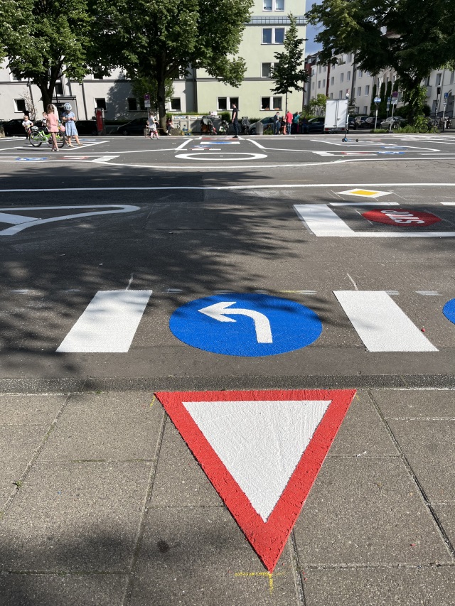 Fahrradstraße, Einbahnstraße, Vorfahrt achten – spielerisch auf dem Auerbachplatz