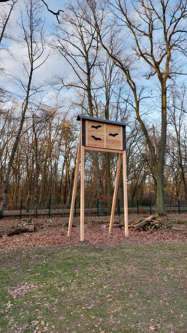An vier verschiedenen Standorten innerhalb des Stadtgebiets wurden durch die Stadt Köln aufgeständerte Fledermausflachkästen installiert. Diese befinden sich am Kalscheurer Weiher, im Lindenthaler Tierpark, an der Streuobstwiese "Am Weißen Mönch" und an Gut Leidenhausen. Die Kästen sollen als neue mögliche Sommerquartiere die Lebensraumsituation der hier lebenden Fledermäuse verbessern und so dem steten Rückgang der heimischen Fledermausarten entgegenwirken.