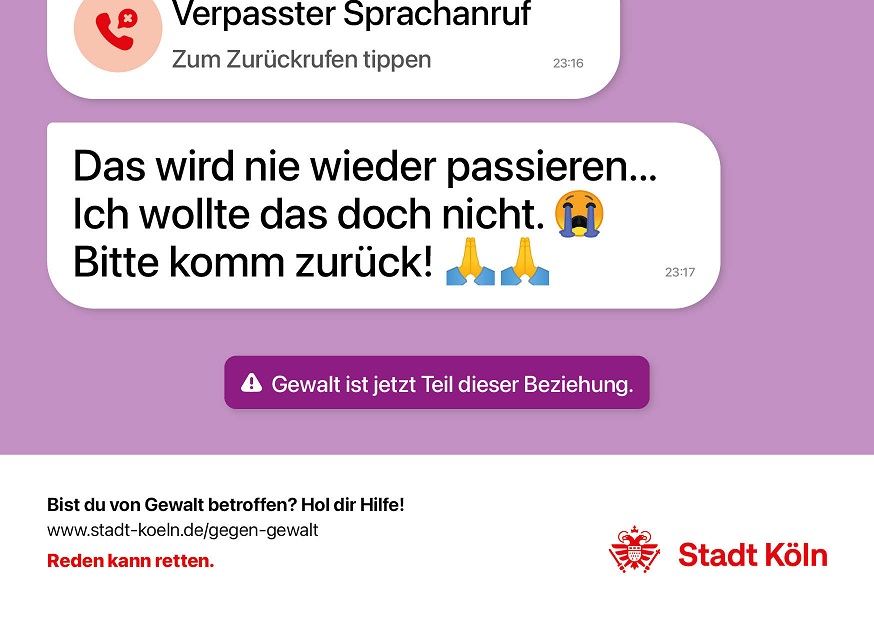 Weitere Informationen zur Kampagne sind verfügbar unter: www.stadt-koeln.de/gegen-gewalt