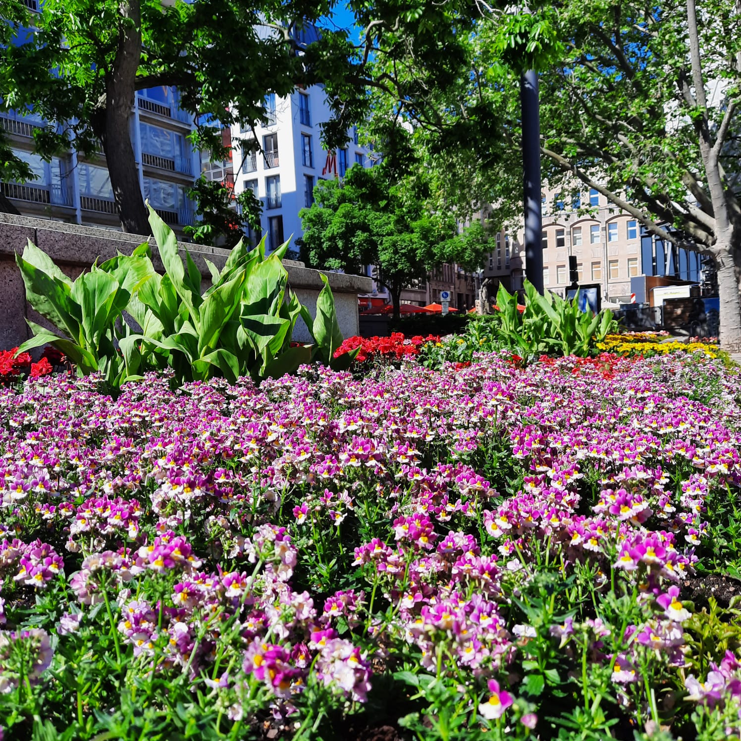 Daneben sind auch die Schmuckbeete in Rodenkirchen und am Kolping-Denkmal in der Kölner Innenstadt bepflanzt. Dort erstrahlen Begonien, Iresinen, Geranien, Tagetes, Hibiskus-Büsche und andere Sommerblumen. Die Schmuckbeete am Heinzelmännchenbrunnen, an der Deutzer Brücke und am Roncalli-Platz, wurden ebenfalls in Szene gesetzt. Die Treppenanlage am Heinrich-Böll-Platz wurde mit weiteren Lavendelpflanzen ergänzt und der Rasen ausgebessert. Anfang nächster Woche werden auch die Schmuckbeete in der Anlage am Kaiser-Wilhelm-Ring gestaltet.