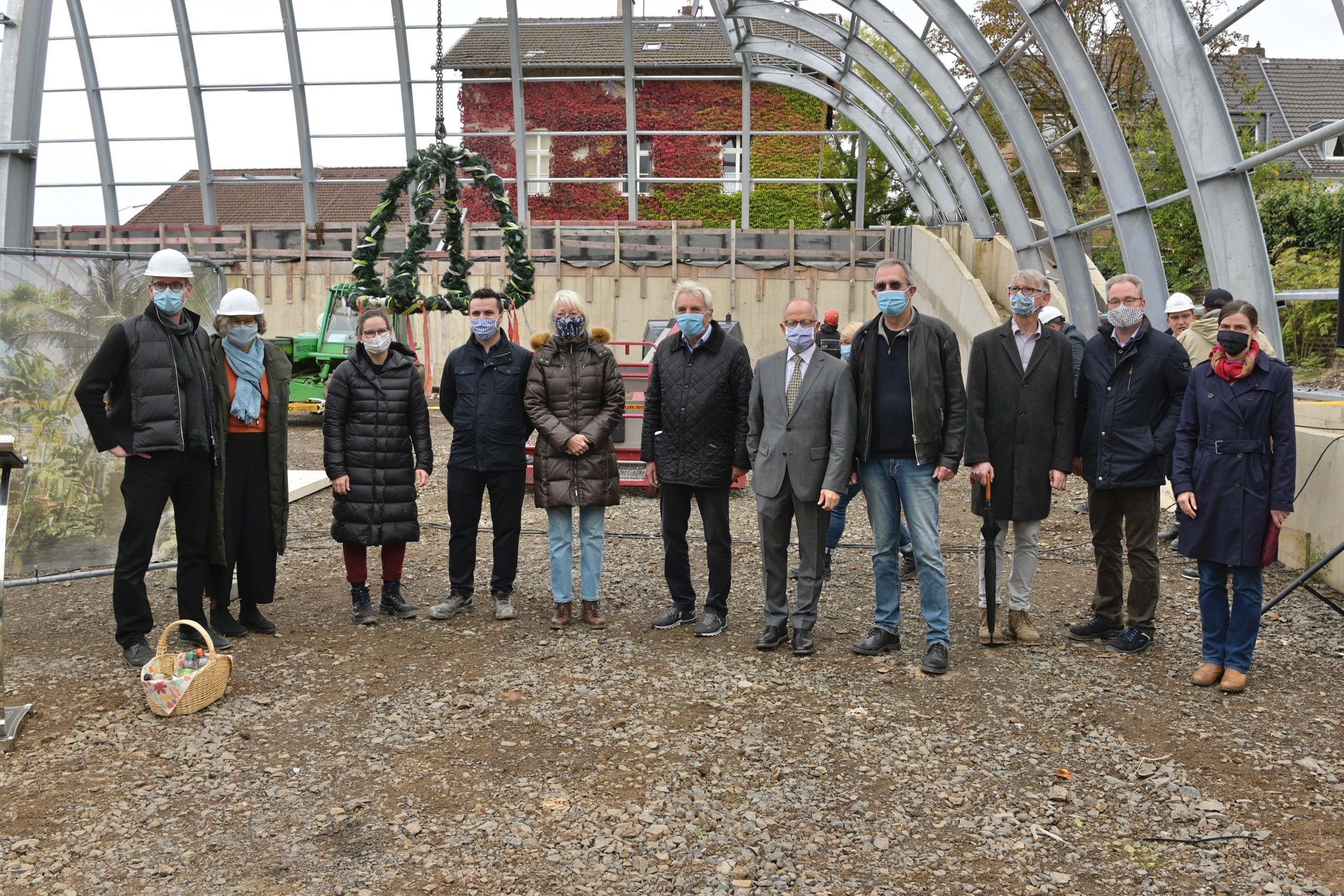 In Vertretung von Oberbürgermeisterin Henriette Reker hat am heutigen Donnerstag, 8. Oktober 2020, Bürgermeisterin Elfi Scho-Antwerpes die Gäste beim Richtfest im Botanischen Garten begrüßt. Im Beisein von Vertretern aus Politik und Verwaltung, vom "Freundeskreis Botanischer Garten Köln e.V." und dem betreuenden Architekturbüro Königs wurde bei der traditionellen Zeremonie der Dank an alle am Bau Beteiligten ausgesprochen und der Richtspruch gehalten.