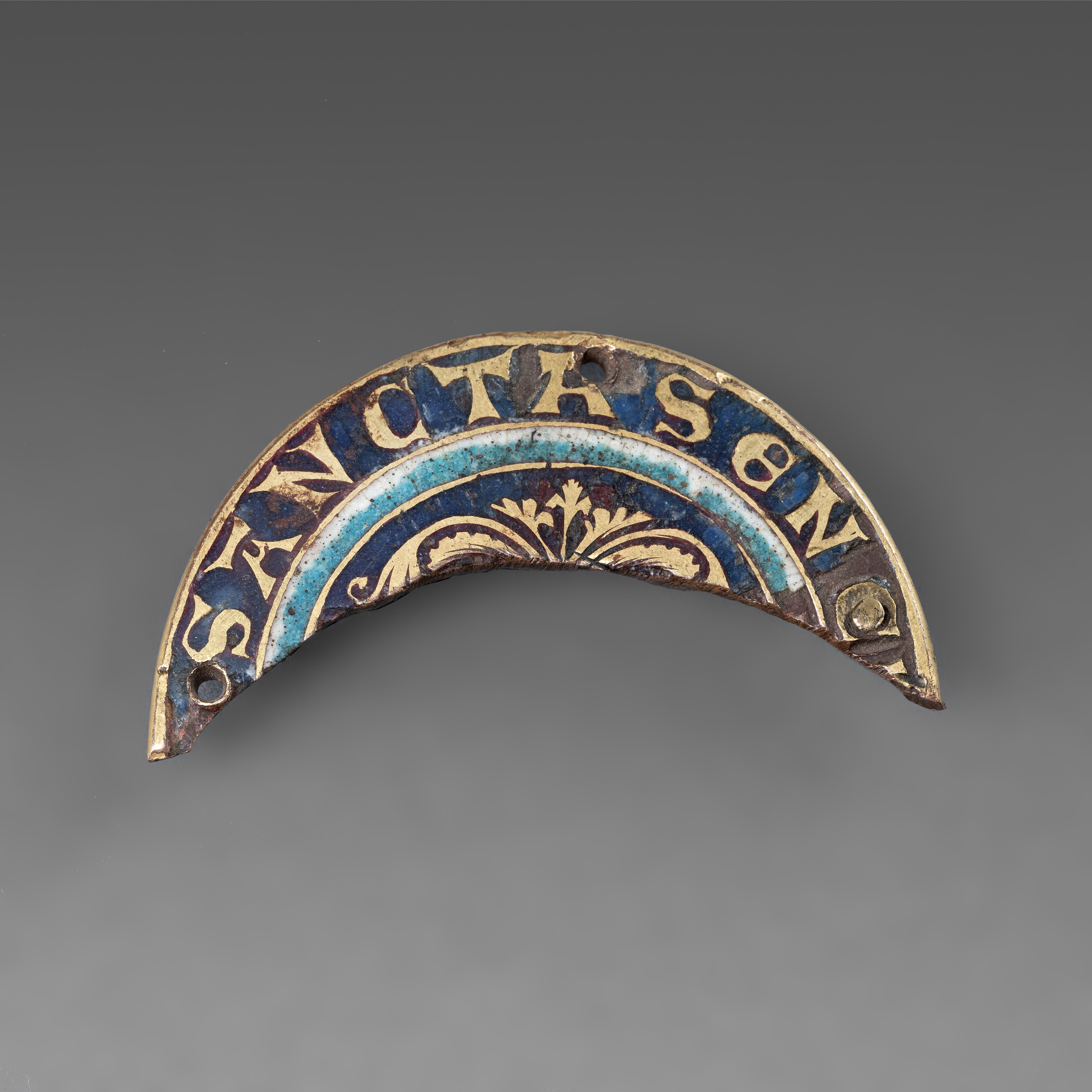 Erneut freut sich das Museum Schnütgen über ein kostbares Geschenk. Die angesehene Pariser Kunsthandlung Brimo de Laroussilhe schenkt dem Museum den Nimbus (Heiligenschein) der Heiligen Sencia vom Kölner Ursulaschrein. Der Ursulaschrein wurde um 1170 angefertigt und während der Säkularisation fast all seines Schmucks beraubt. Bei der Wiederherstellung des Schreins im 19. Jahrhundert wurden die Figuren der Ursulanischen Jungfrauen erneuert, darunter auch die Heilige Sencia und ihr Nimbus. Die fragmentarisch erhaltene Emailplatte mit der Inschrift SANCTA SENC[IA] befand sich bereits 1894 in der Sammlung des Museumsgründers Alexander Schnütgen. Nachweislich erschien sie 1913 als Teil der Museumssammlung im Bestandskatalog.