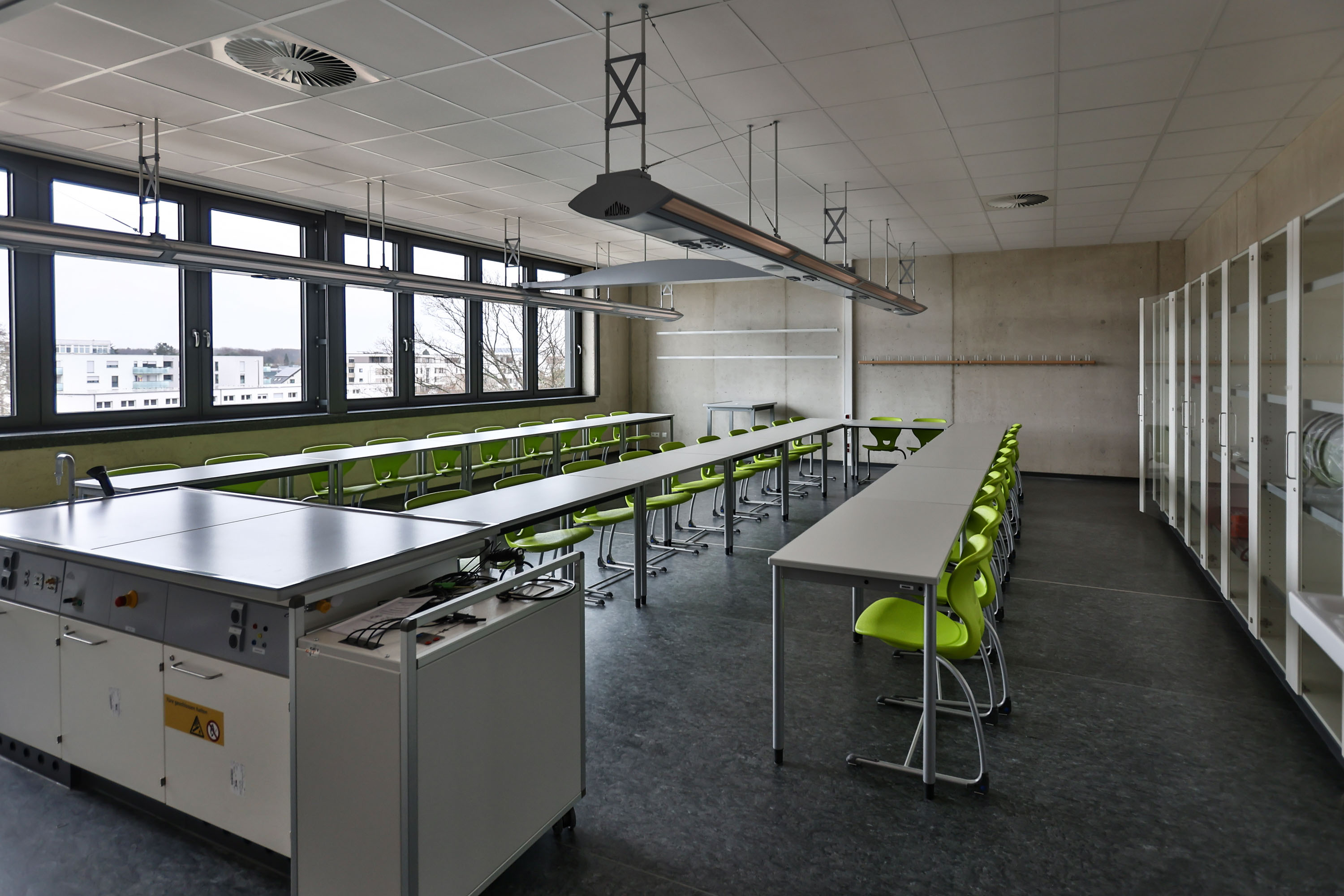 Der Erweiterungsbau ersetzt den vorhandenen provisorischen Interimsbau. Durch diesen konnte die Zügigkeit der Schule im Schuljahr 2017/2018 von sechs auf acht Züge in der Sekundarstufe I und von fünf auf sieben Züge in der Sekundarstufe II erhöht werden. In den Neubau sollen nun die Jahrgangstufen fünf und sechs einziehen. Noch stehen die letzten Abnahmen an, nach den Osterferien können die Gebäude dann voraussichtlich von der Schule übernommen werden.