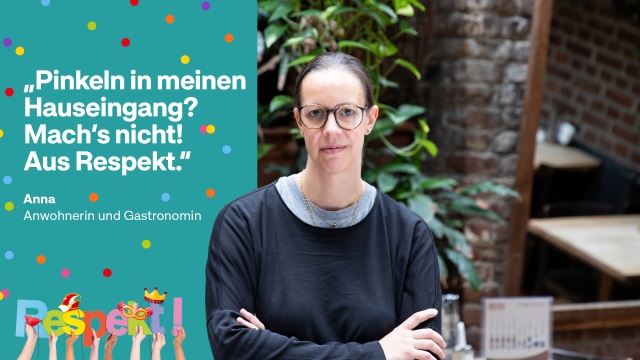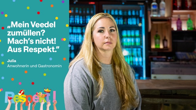 In einer gemeinsamen Social-Media-Kampagne von Stadt Köln und Akteur*innen im Kwartier Latäng wenden sich unter anderem betroffene Anwohner*innen und Gastronom*innen mit deutlichen Botschaften an die Karnevalsjecken und fordern einen respektvollen Umgang ein.