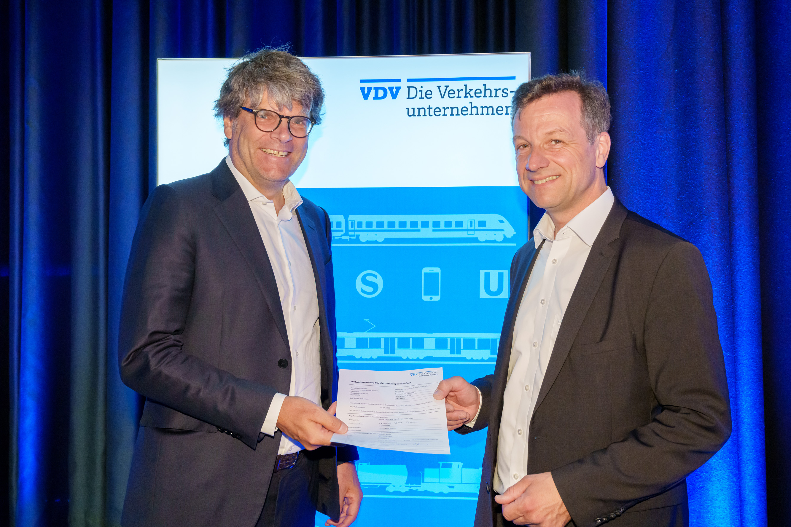 Seit dem vergangenen Jahr können Kommunen außerordentliche Mitglieder im Verband Deutscher Verkehrsunternehmen e.V. (VDV) werden. Der Verband Deutscher Verkehrsunternehmen (VDV) ist der Branchenverband des öffentlichen Personen- und Schienengüterverkehrs mit mehr als 640 Mitgliedsunternehmen. Branche und Branchenverband sorgen für mehr klimaschonende Beförderung und Transport von Menschen und Gütern bei weniger Verkehr: Rund 7,1 Milliarden Fahrgäste in Deutschland nutzten im Corona-Jahr 2020 den Öffentlichen Personennahverkehr der VDV-Mitgliedsunternehmen. Busse und Bahnen ersetzten damit jeden Tag rund 14 Millionen Autofahrten auf deutschen Straßen. 2020 transportierten die VDV-Unternehmen im Schienengüterverkehr 288 Millionen Tonnen und ersetzten so rund 67.000 voll beladene Lkw auf deutschen Straßen.