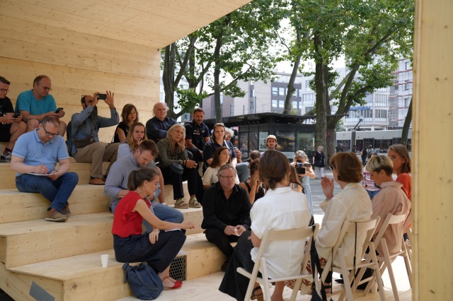Kulturdezernent Stefan Charles und das Projektteam werden den Pavillon und die Ausstellung am Mittwoch, 28. Juni 2023, 18 Uhr, offiziell eröffnen. Um 19.30 Uhr spielt die Band "Chanson Trottoir".
