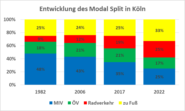 Insbesondere hinsichtlich des öffentlichen Verkehrs (ÖV) und des Autoverkehrs muss festgehalten werden, dass sämtliche Verkehre, die von außerhalb nach Köln kommen, zuvorderst also die Pendelverkehre aus dem Umland, in den Ergebnissen nicht abgebildet sind, da sich diese ausschließlich auf die Wege der Kölner Wohnbevölkerung beziehen.