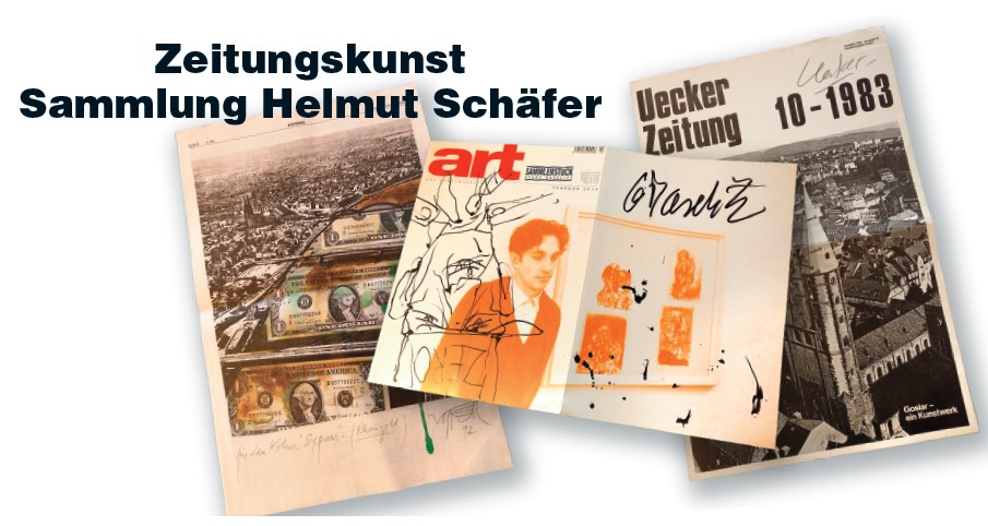 Die Kunst- und Museumsbibliothek der Stadt Köln zeigt vom 25. Januar bis 9. März 2025 die Ausstellung „Zeitungskunst, Sammlung Helmut Schäfer“. Die Ausstellungseröffnung findet am Freitag, 24. Januar 2025, 19 Uhr, in der Kunst- und Museumsbibliothek, Lesesaal, Henrich-Böll-Platz/Bischofsgartenstraße 1, Eingang: Filmforum, Köln-Innenstadt, statt. Die Ausstellung zeigt eine Auswahl aus der Sammlung von Dr. Helmut Schäfer. Seit 1990 sammelt Dr. Helmut Schäfer "Zeitungskunst" und lässt sie sich oft nachträglich von den Künstler*innen nochmals signieren. Doch was ist unter "Zeitungskunst" oder auch "Künstler-" bzw. "Kunstausgabe" einer Zeitung zu verstehen? Gemeint ist die zumeist in Kooperation mit einem Zeitungsverlag entstandene, in einer Zeitung veröffentlichte Kunst. Die Zeitungen selbst bezeichnen diese Zeitungen selbst als "Künstlerausgaben" (DIE WELT), "Kunstausgaben" oder auch "Sonderausgaben" (Süddeutsche Zeitung).