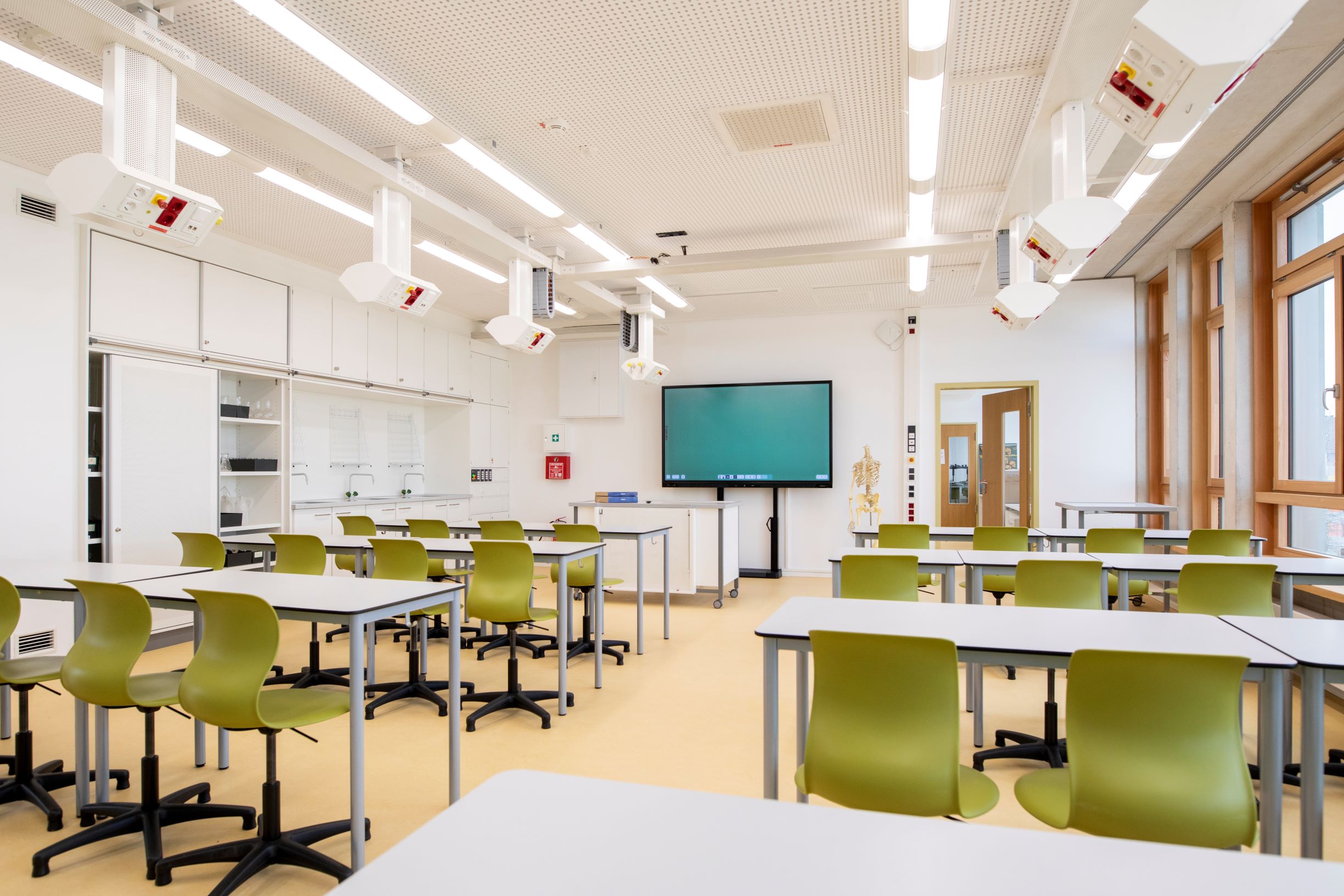 Materiallieferungen, auch aus dem Ausland, verzögerten sich. Auch Personalengpässe bei den Firmen machten sich bemerkbar. Während der Ausführungsphase haben sich Anforderungen an die Planung für den Mensabereich geändert. Hierfür mussten neue Fachplanungen erfolgen sowie Lüftung und Stromversorgung in diesem Bereich angepasst werden. Entstanden ist eine hochmoderne Mensa mit Selbstbedienung, die sowohl dem Wunsch als auch dem pädagogischen Konzept der Schule entspricht.