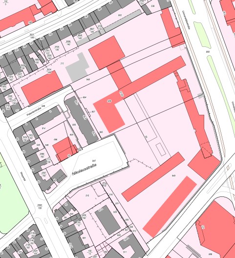 Durch Neubau entstand am Ende der Nikolausstraße ein neuer Eingangsplatz, der von der Mensa und der Bibliothek im Erdgeschoss sowie den Bestandsbauten eingerahmt wird.