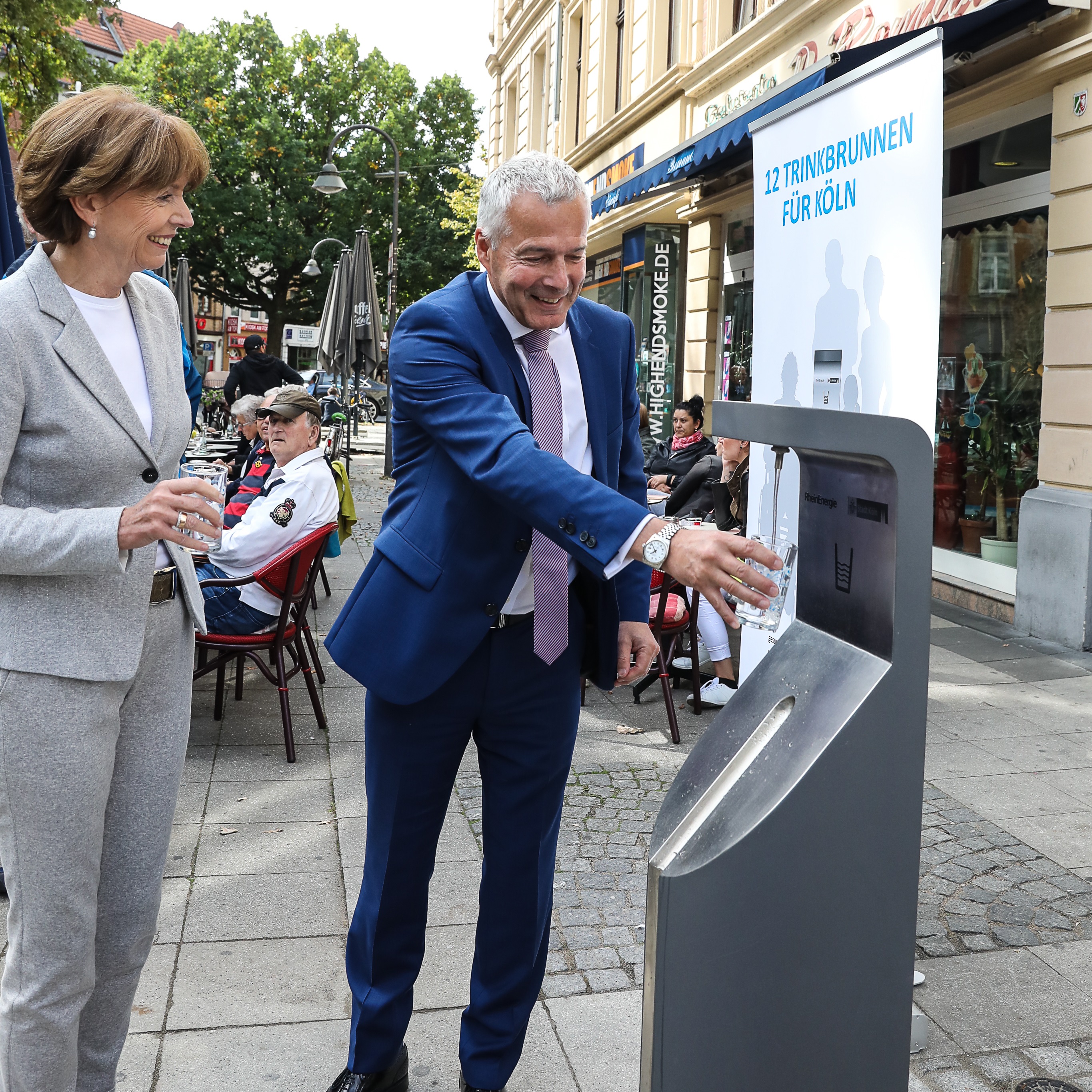 Außerdem rücken sie die Bedeutung des wichtigsten und vor allem nachhaltigen Lebensmittels Trinkwasser mehr in das Bewusstsein der Bürgerinnen und Bürger und leisten einen Beitrag zur Gesundheitsförderung. Auch vor dem Hintergrund der Klimaanpassung verbessern Trinkbrunnen die Stadträume. Aufgrund des sehr guten Kölner Wassers, das aus rein natürlichen Quellen stammt, sind die Anlagen bewusst als "Dauerläufer" mit einem feinen Wasserstrahl konstruiert. So bleibt das Wasser stets frisch, kühl und vor allem einwandfrei.
