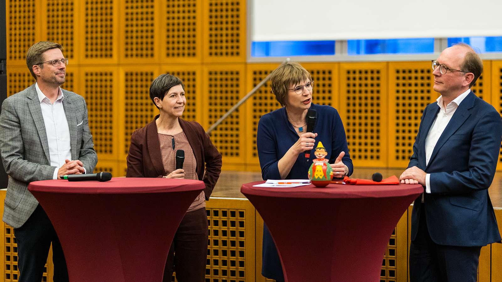 In der Abschlussdiskussion betonte Andree Haack, dass in der integrierten Stadtentwicklung viele Akteur*innen zusammenarbeiten müssen. Die Verwaltung steuere hier nicht allein. Die Aushandlung von Entwicklungsprioritäten sei daher umfänglich und nicht immer erfolgreich. Brigitte Scholz ergänzte, dass Köln durch die Stadtstrategie "Kölner Perspektiven 2030+" bereits über einen abgestimmten Kompass der Stadtentwicklung verfüge. Dieser bilde die Grundlage für eine urbane und nachhaltige Transformation der Stadt. Die Diskutant*innen waren sich einig, dass ein resilienter Stadtumbau gelingen kann. Dazu seien gute Prozesse, der Einsatz vorhandener Instrumente und eine gute Zusammenarbeit und Kompromissbereitschaft die Schlüssel zum Erfolg. Auf Einladung von Andree Haack wurden die Diskussionen bei einem Glas Kölsch im Foyer des Museums weitergeführt und vertieft.