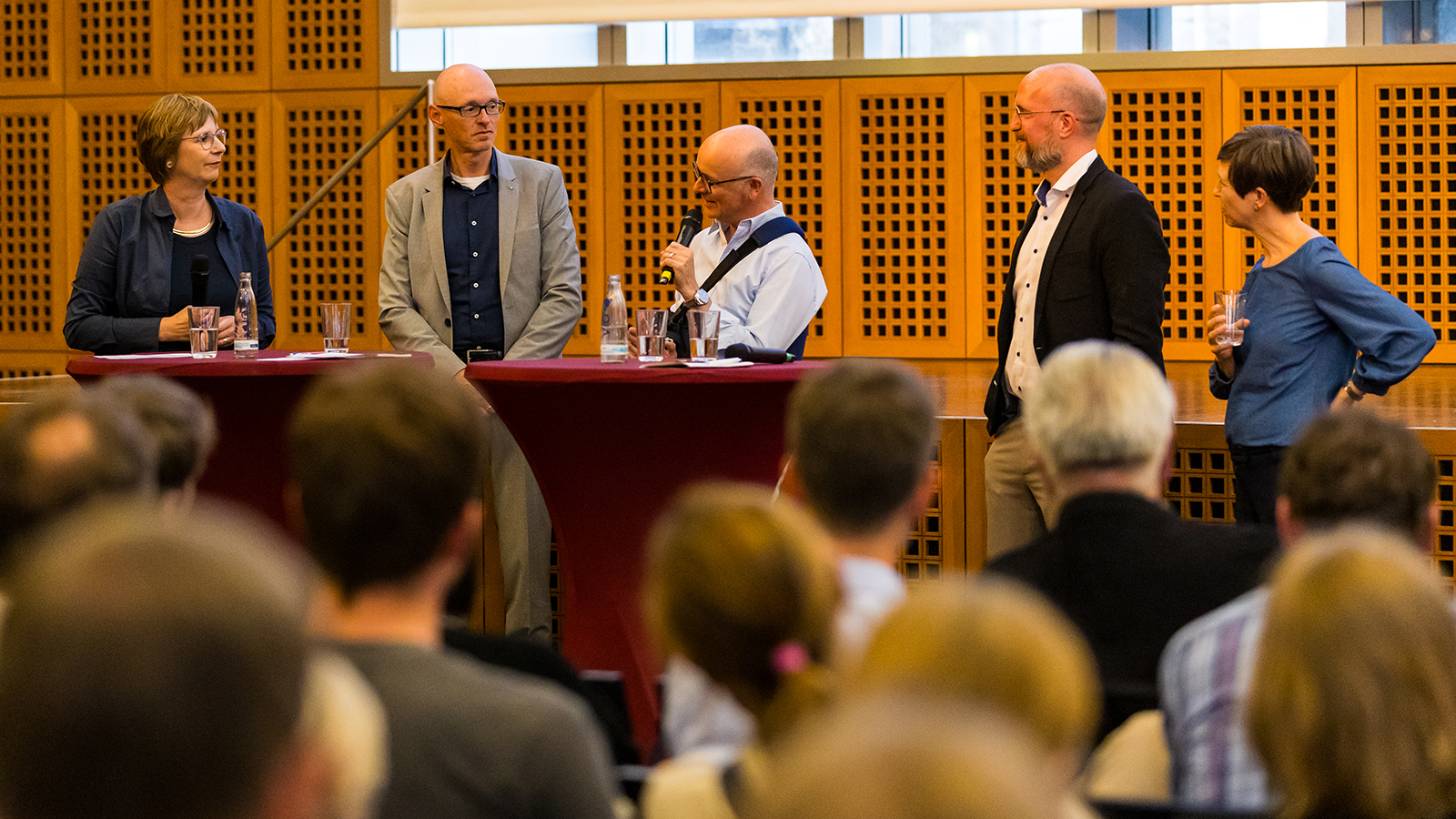 Im Anschluss an die beiden Vorträge und den Kommentar aus Kölner Sicht stellten sich Brigitte Scholz, Andree Haack und Timo von Lepel den Fragen des Publikums. Die Diskussionsrunde war sich einig, dass die Herausforderungen zwischen Stadtentwicklung und sich ständig verändernden technischen Möglichkeiten groß sind. Insbesondere Datenverfügbarkeit, -verknüpfung und -kontrolle sowie mehr digitale Beteiligungsmöglichkeiten und deren Moderation wurden in der Diskussion genannt.