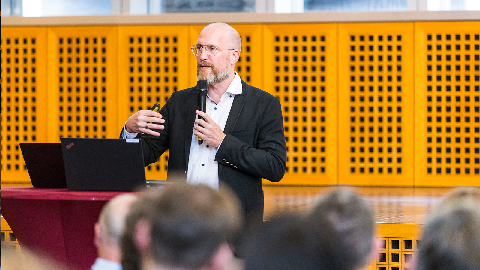 Nach diesem kurzen Impuls gehörte das Mikrophon Martin Hunscher. Er leitete seinen Vortrag mit der Vorstellung der zentralen Themen "Urbanen Resilienz" und "Stadtumbau" ein: