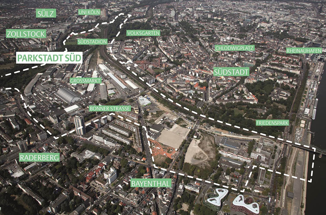 Der Innere Grüngürtel weist zwischen Uni-Campus und Rhein seit jeher eine große Lücke auf. 2007 empfahl der städtebauliche Masterplan Innenstadt, den Lückenschluss als Chance für die städtebauliche Erweiterung der südlichen Innenstadt zu nutzen. Etwa ein Drittel der 115 Hektar großen Fläche nutzt der Großmarkt. Mit der Entscheidung des Stadtrates, den Großmarkt an den Stadtrand zu verlegen, bot sich erstmals die Chance für eine städtebaulich-freiräumliche Neuordnung des Geländes zwischen Eifelwall und Rheinufer – ein Jahrhundertprojekt.