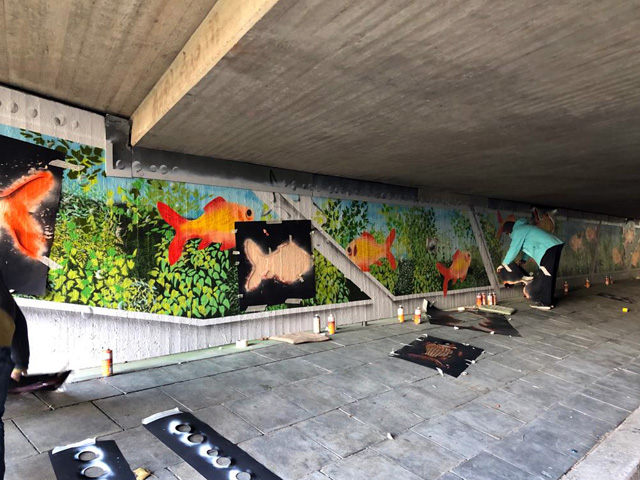 Kunstprojekt mit Jugendlichen an der Unterführung Katzbachweg zur Kriegerhofstraße
