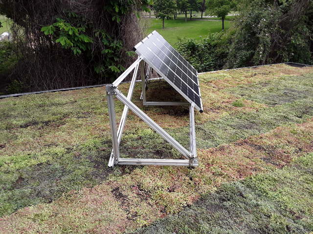 Errichtetes Gründach mit Solaranlage auf den Überseecontainern der Kinder- und Jugendeinrichtung Northside