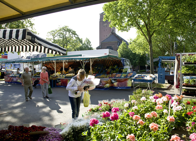 Der Wochenmarkt an der Bergisch Gladbacher Straße, gegenüber der Kirche Maria Himmelfahrt, in Köln-Holweide findet immer samstags statt.